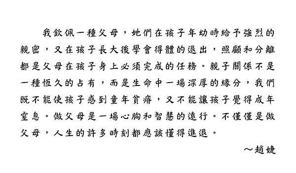 寫得真好~~ 也許很難做到...但我要期許我自己...不只是現在這麼濃厚的愛著孩子,讓孩子感受到滿滿的愛...